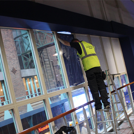 Our highly skilled and experienced installation team have worked on a huge range of projects over the years, approaching one-off projects with the same care and attention that they approach nationwide, multi-site contracts. So if you need a venue wrapped in a building-sized banner, a football pitch-sized floor graphic installed on your floor, a window graphic that will draw customers into your business, temporary exhibition signage installed, or your indoor and outdoor signage changed across multiple business locations, our experienced installation team can help.