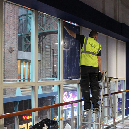 On largescale or more complex installation projects we always suggest a pre-installation site survey that allows us to fully assess the complexity of the job and ascertain whether or not specialist installation equipment like abseil equipment and cherry pickers is required. Once we understand the parameters of the installation we’ll find an installation date to suit you and our team will arrive at an agreed time and begin installation. Installation times vary depending on the size, complexity and placement of your window graphic, but our team are fast and professional, keeping installation times and disruption to a minimum. All of our installation work is guaranteed, and our team won’t leave the site until you are totally happy with their work. If you have existing window graphics that need to be removed we also offer a useful removal and disposal service. Our installation services are all bespoke so you can design the perfect combination of services to meet your exact requirements – perfect!